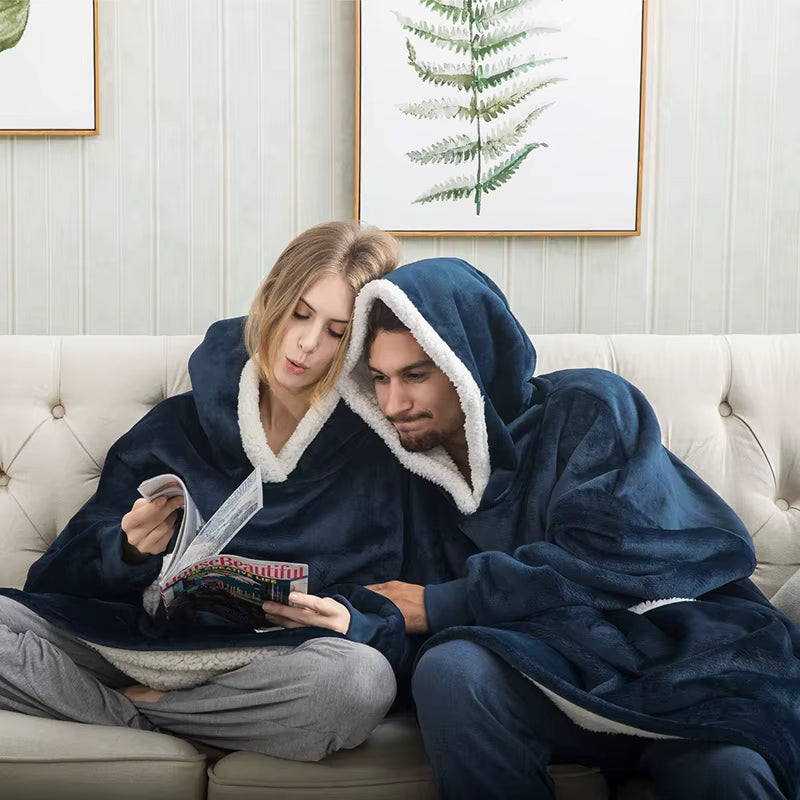 The CozyWrap Hoodie Blanket combines softness and style for ultimate comfort. Crafted with a lambs wool–like fleece, it delivers warmth that feels like a gentle hug. Its oversized design is perfect for lounging solo or cuddling up together, and it’s easy to care for with a quick wash.